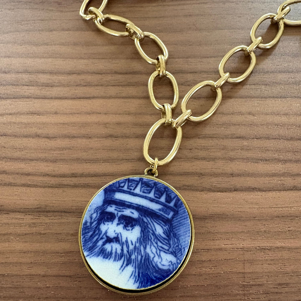 The pendant of Lear hangs from a beautiful raw brass chain that adjusts from 16" - 22" in length.