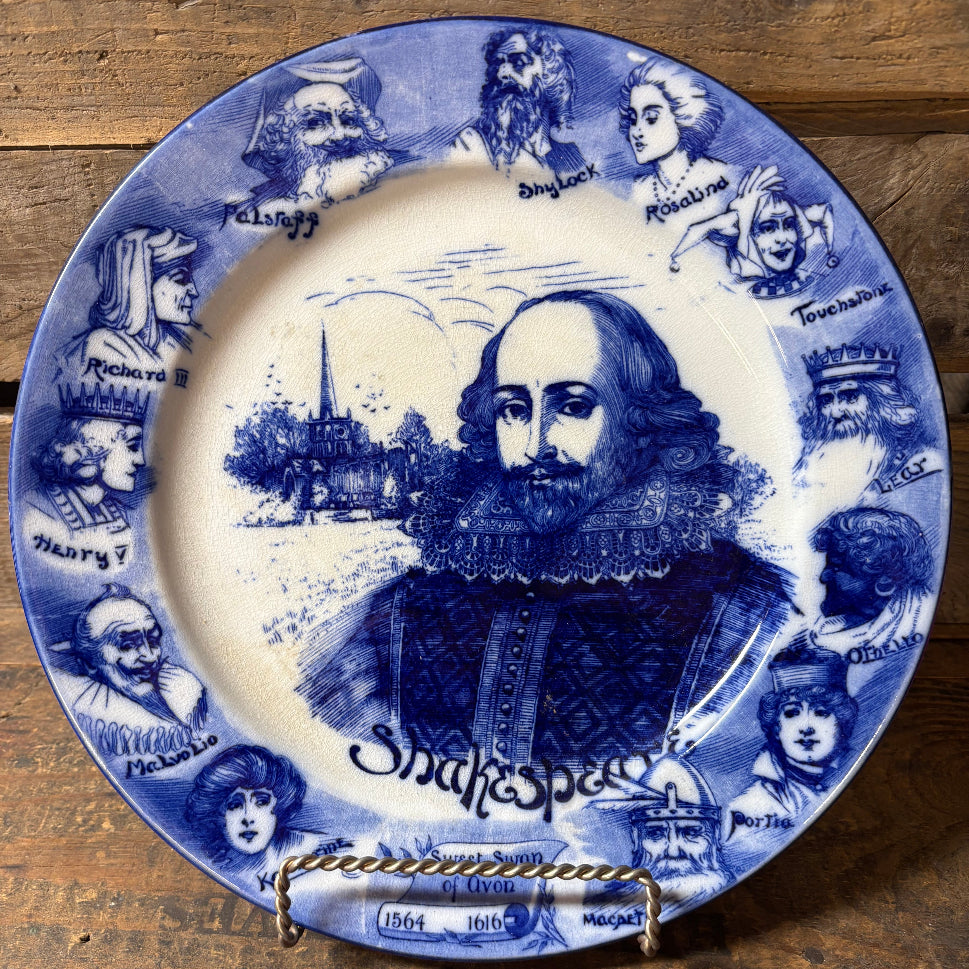 Titled "Shakespeare Sweet Swan of Avon" this plate features some of the characters of Shakespearian works during his lifetime.
