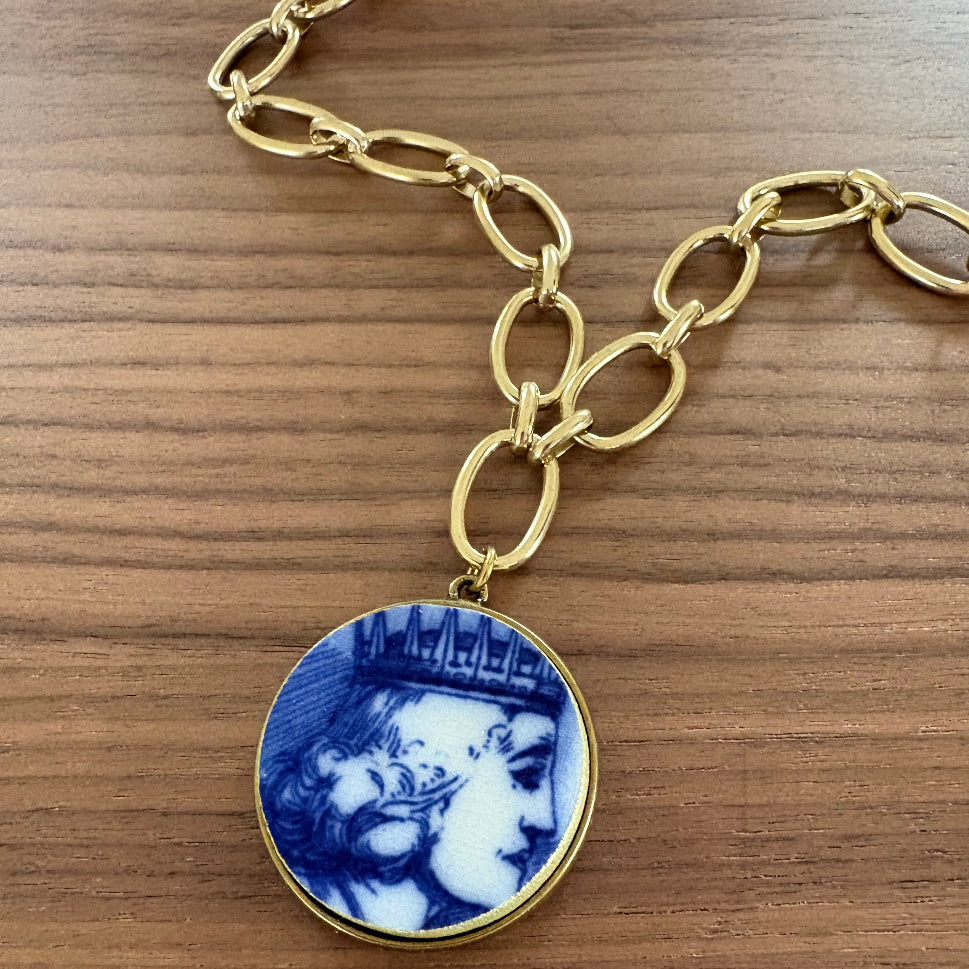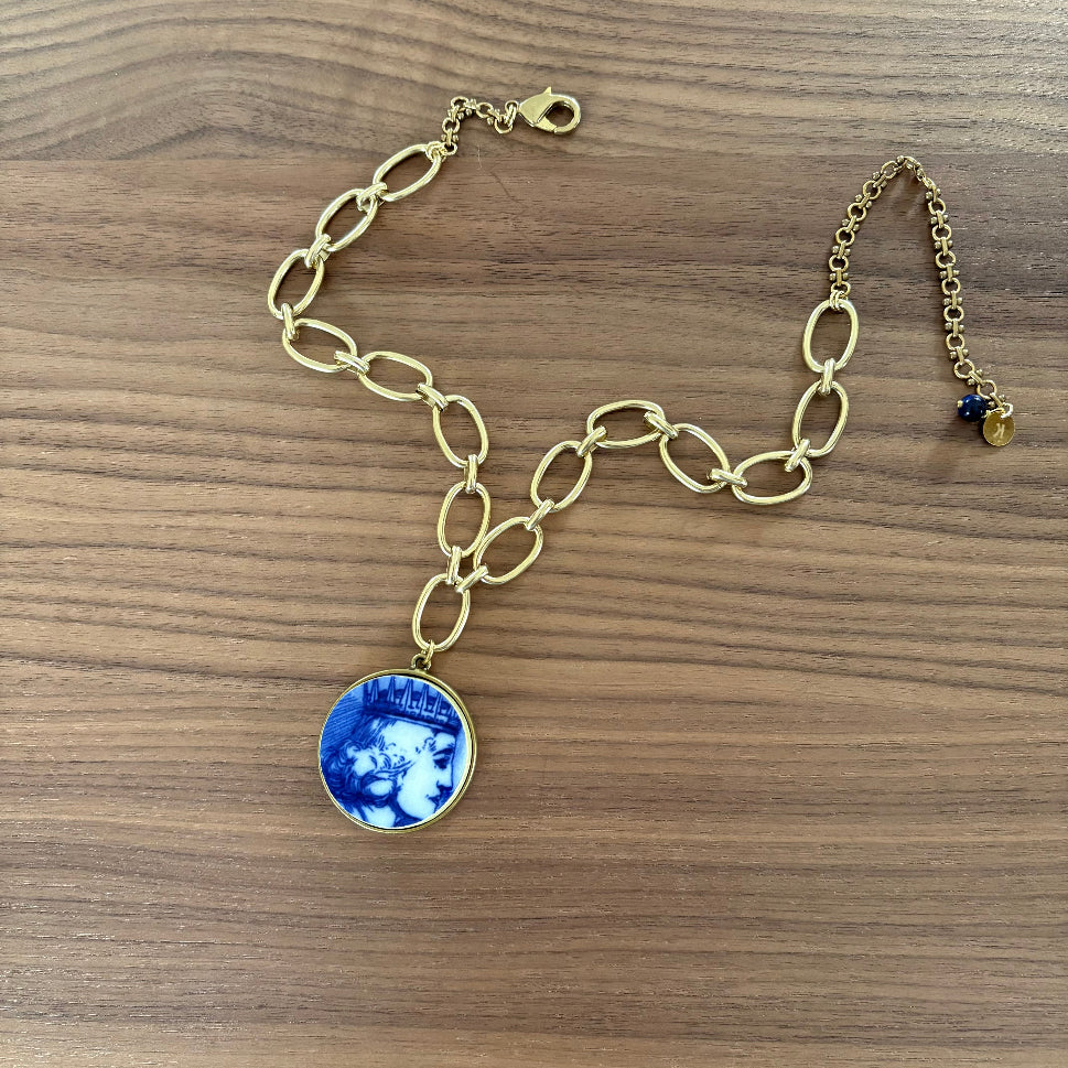 The pendant of Henry V hangs from a beautiful raw brass chain that adjusts from 16" - 22" in length.